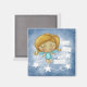 Den grå, vita ängeln som är klädd i blått håller en tråd som är uppbunden genom fyra stjärnor. Rubriken är: "Hon hängde stjärnorna". Fylld bakgrund för söt blå konstellation. Den ursprungliga designen av Christie Black av Creations från hjärtat.