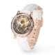 Vackra änglar som håller en harp medan de tittar uppåt, finns med på den här klockan för kvinnor. vintagen i ro med vit läderremsa har klastlåsbeslag. Använda dig själv eller ge som en gåva, ett söt till behålla.