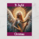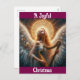 Vacker bild av en ängel som tittar upp medan den spelar harpa finns på detta julkort. Framsidan av kortet lyder "En glädjefull jul" och baksidan av kortet lyder "Till dig och din familj, ett välsignat nytt år också"! Ett vackert kort att skicka till familj och vänner under julen!
