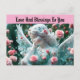Vackra bild om en ängel omgiven av rosa ros finns på detta vykort på Alla hjärtans dag. Framsidan av vykortet lyder "Kärlek och välsignelser till dig" och baksidan av vykortet lyder "På Alla hjärtans dag". Ett underbart vykort för att skicka familj och vänner till Alla hjärtans dag!