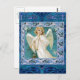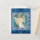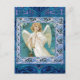 En söt liten skyddsängel med en trumpet. Bakgrunden är blå.