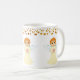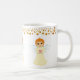 Elegant och vacker mugg med ängel- och guldprickskonfettiddekor på vit bakgrund. Gulddekorationen är bara en bild. Njut av denna lyxmugg.