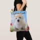 The design depicts a bichon puppy in a meadow looking angelic.