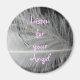 Angel-budmagnet - Fjäderdesign med citatet "Lyssna efter din ängel" på ljusa rosa.