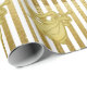 Ett vackert vågrät som upprepar mönster i lodrät faux guld och vitt rand där en gyllene ängel flyter medan en horn blåses.