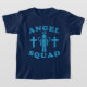 Vintage stil blå "Angel Squad"-text med symbolen för en person med vingar och en gloria. Kor flank personen i denna kristna design. Produkterna är anpassade för att göra ditt engångsartiklar.