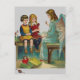 vintage konst i multifärg med två söta barn sitta i en stol i ett klassrum med en vacker ängel med vingar undervisning medan man håller i bok.