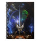 I den här versionen av "Arkledious-ord i ängeln Vinge" Skapade jag en rymdbakgrund och en jordmån Tittar förgrund, vilket var min ursprungliga avsikt när jag började göra detta Biet. Denna skapelse med denna typ av bakgrund sätter fokus på ord, eftersom det finns många andra komplexa Inslag att uppmärksamma tittarna på. För att göra denna version möjlig lade jag till ytterligare 11 frätande Inslag i originalet 23 för totalt 34 fjällande Inslag. Jag har också modifierat det Ge ordet Angel Vinge så att det ser ut att framhävas av det centrala nebulakluster som avger vitt ljus. Angel Vinge Sword of Arkledious Space Spiral Notebook