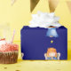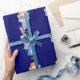 Gullig ängelflicka som ber mörk - blåttjulen som slår in gåvan, skyler över brister. Unikt målad vattenfärgkonst av ängelflickan av Sarah Trett.