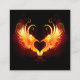 Ängelhjärta med flammande vingar på svart bakgrund.