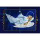 Linda Baysinger hack målning av en vit, flygängel, med blåttnatthimmel, moln och stjärnor. Den guld- metalliska lookgränsen och rullor omger kanterna.