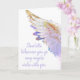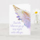 Surround someone with peace and divine presence with this personalized Angels With You greeting card. A luminous solo angel wing in soft lavender, white, and touches of gold rests on an ethereal background, carrying the comforting message: “Wherever you go, may angels walk with you.”