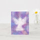 Vacker vit ängel med en fantastisk lila bokeh-bakgrund. Ett kort för förlust, sorg, sympati eller någon som bara går igenom en svår tid med sjukdom eller depression.