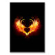Änglaglödande hjärta med flammande vingar på svart bakgrund.