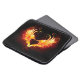 Änglahjärta med flammande vingar på svart bakgrund.