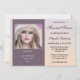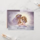 Inbjudan till minnesstund eller begravning med en målning av en vacker ängel på framsidan och ditt anpassade foto på baksidan.