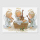 Tre änglar spelar instrument över Jesus i mangaren. Dessa tre baby-änglar spelar musikinstrument runt baby Jesus i manern.