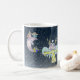 Den här lustiga tecknadens ängel spelar upp hamnen på ett moln i stjärnnatten himlar, med lite Julgran väv. En lysande stjärna lyser ovanpå det söta träd som träd-toppen. Texten lyder "Joy". På andra sidan finns ett måne med flera fler änglar och en stor ängel med grönt polka prick. Ändra eller redigera texten för att skapa ditt eget anpassad design.