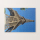 sätta ihop pussel delarare för ett vinklat Eiffel Torn.
