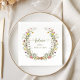 Avslöja tidlös elegans med våra blomsterbröllopsservetter av papper, vackert prydda med en fängslande färgrik äng vildblomma krans. Personligiserade med den blivande brudens namn, dessa stilfulla servetter tillför en varm och särpräglad charm till din bröllopsfirande dukning.