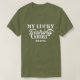 En humoristisk t-shirt med typografiskt citat "Mitt Lucky Fishing Shirt". Det är perfekt för karpfiskare, flygfiske älskare och havstrålererska fiskare