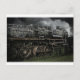 Ångmotor i tåg på järnväg vykort
