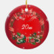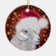 Hand målade porträtt av denna söt angorabas get i Santa Hat - på en djup kristen röd bakgrund med mousserande guld snöflingor. Julprydnadsföremål för din Helgdag-gåva ge, Julgran eller fönsterdekorationer - anpassa datumet på baksidan