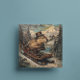 Omfamna en mekanisk vintervärld med detta fantastiska julkort inspirerat av steampunk, med en elegant bever i cylinder som styr en invecklad mässingssläde. Konsten visar upp en rik, målerisk textur med metalliska kopparfärgade höjdljus och lysande mekaniska kugghjul som kontrasterar vackert mot den månbelysta alpina landskapsbilden. Denna fantasifulla design är ett perfekt val för gadgetälskare, steampunk-entusiaster eller alla som vill skicka en "God Jul" som verkligen är unik.