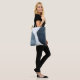 Intilliggande Abstraction II av Emma Scarvey. Innehåller upp-nära sexkantsliknande former som har olika struktur och som i första hand är gjorda i blånyanser.