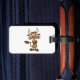Easily identify your bags with these durable luggage tags featuring the angry cartoon bull or cow graphic. The funny grumpy steer illustration stands out on the carousel, adding a humorous and unique touch to your travel gear. Perfect for frequent travelers who want to use this mad cattle character design for simple identification.