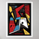 Dramatic and bold angular abstract art features bold lines, vibrant colors geometric shapes in red, yellow, blue, black and white. Great artwork for an office, dorm room or anywhere you'd like bold colors and expressive abstract art.