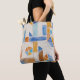 Bolsa com arte feita em aquarela com formas geométricas nas cores base, laranja e azul, pintadas de maneira intuitiva e coordenada pra deixar espaços harmônicos entre os formatos, tornando a obra única e agradável aos olhos.