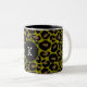 Animal print leopard olive green black initial Två-Tonad mugg