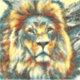 Graphic porträtt av en imponerande manlig lejon, en riktig kung