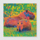 Färggrafik porträtt av en kapybara morsa med hennes baby