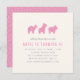 Den här visemiska partiinbjudan innehåller en trio med söta djurkakor i form av kamel, giraffe och lejon. Varje kaka är försedd med ljussken rosa och några regnbågssprinkler. Under den lekande illustrationen står det att "kalla alla djur i party", följt av uppgifter om sammanträffandet. På baksidan av kortet finns det en enkel regnbågsskinkl mönster med samma ljusa rosa bakgrund. Den här designen var avsedd för en barn födelsedagsfest, men jag tänka att det skulle vara perfekt för en babydusch också.