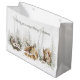 This design features a watercolor illustration of a deer, a squirrel, and a hedgehog in a winter snowy forest.