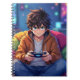 Notebook for a boy who likes to play video games. Great for pre-teen and teens. Anime boy playing video games with a serious look.