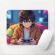 Mouse Pad för en pojke som gillar att spela videospel. Underbar för tonåring och tonåring. Anime-pojken spelar videospel med ett allvarligt utseende.