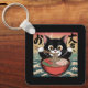 Anime Cat Eating Ramen Funny Japansk Retro Stil Nyckelring