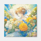 Anime Girl in Gult and Blåa blommor Magnet
