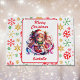Vattenfärgad animerad tjej i julhatt med söt kattad personlig julklapp. På baksidan finns söt Red, guld och grönt snöflingor.
