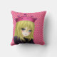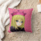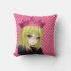 Roligt accent dekorativ kudde utförd i rosa och grönt i mönster, med bilder av en blond animerad flicka, med rosa krona på. Underbar presentidé för henne.
