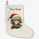 Cute porträtt från en julklapp med grönt hår i animerad tecknad stil