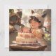 Whimsical anime-stil födelsedags konstverk med ett leende barn med en tårta, perfekt för barnkalas-inbjudningar, dekorationer eller presenter. Charmerande och lekfull, denna design fångar glädjen av firande i en magisk, saga-inspirerad stil.