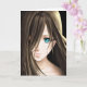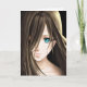 Animeflicka med brunt hår och blå ögon kort