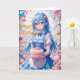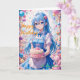 Animeflicka och Kawaii tårtafirande Kort