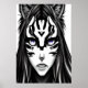 Svart och vit animerad flicka med katt öron och lila öga. Det här är en AI-skapad konst.