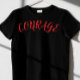 Här är en Anime & Manga Influenced design som innehåller frasen "Courage" i ett fet teckensnitt med rött- och glödeffekter. Blodrött himmel, linjer ge med en dynamisk hastighet är en högenergifylld, handlingfull vib. 🌟 ✨