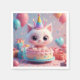 En underbar tecknad katt med en födelsedagskatt sitter mitt i färgstarka ballonger, inslagna gåvor och en kaka full med ljus, skapande en glatt och berömmande atmosfär.